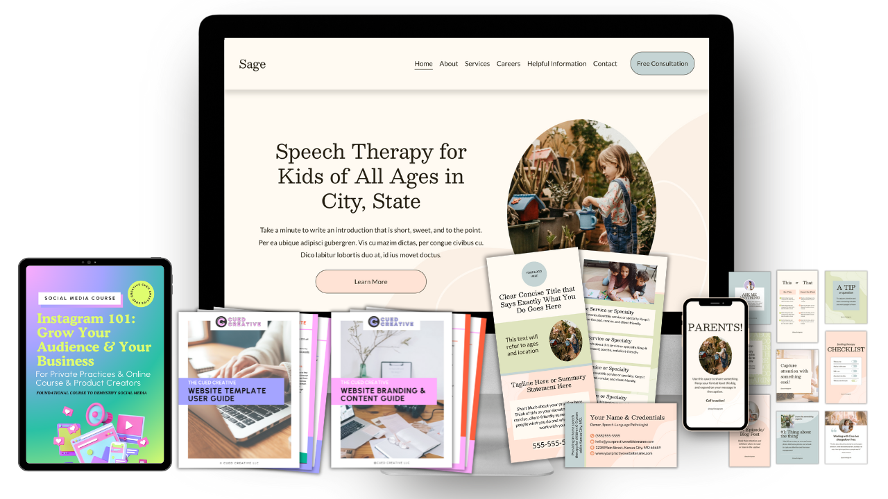 ✓ 15 social media graphic templates (sized for posts, stories, & reels!) to coordinate with your website