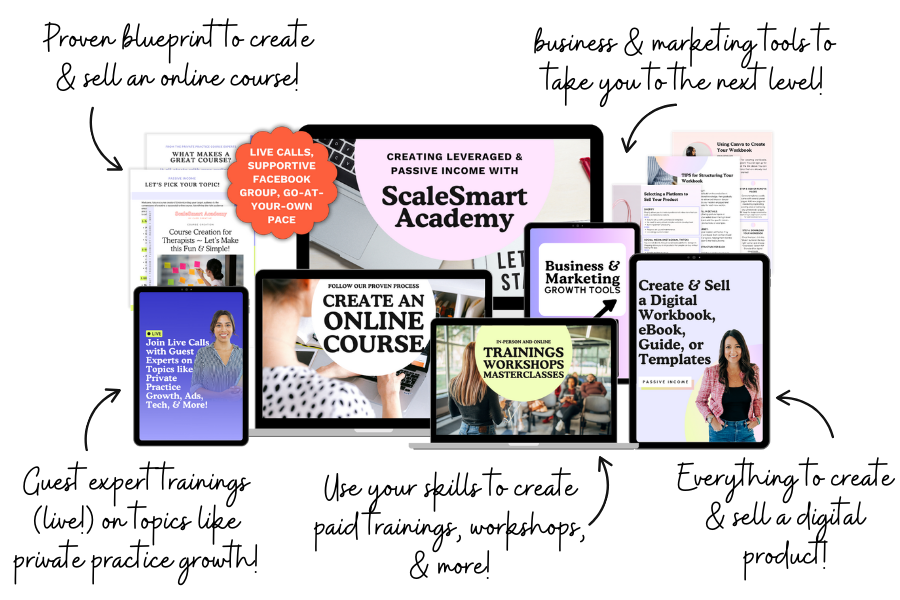 And access to our library of trainings and resources for private practices and digital creators (valued at over $1500!!!)
