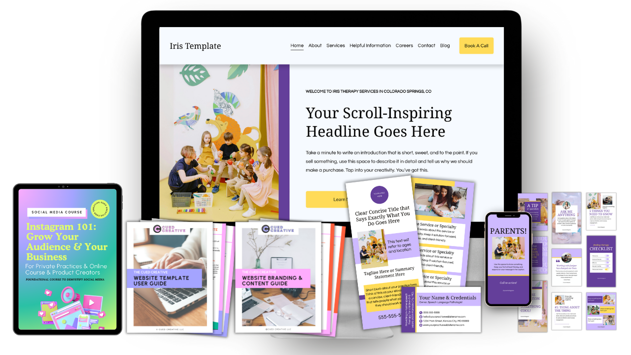 ✓ 15 social media graphic templates (sized for posts, stories, & reels!) to coordinate with your website